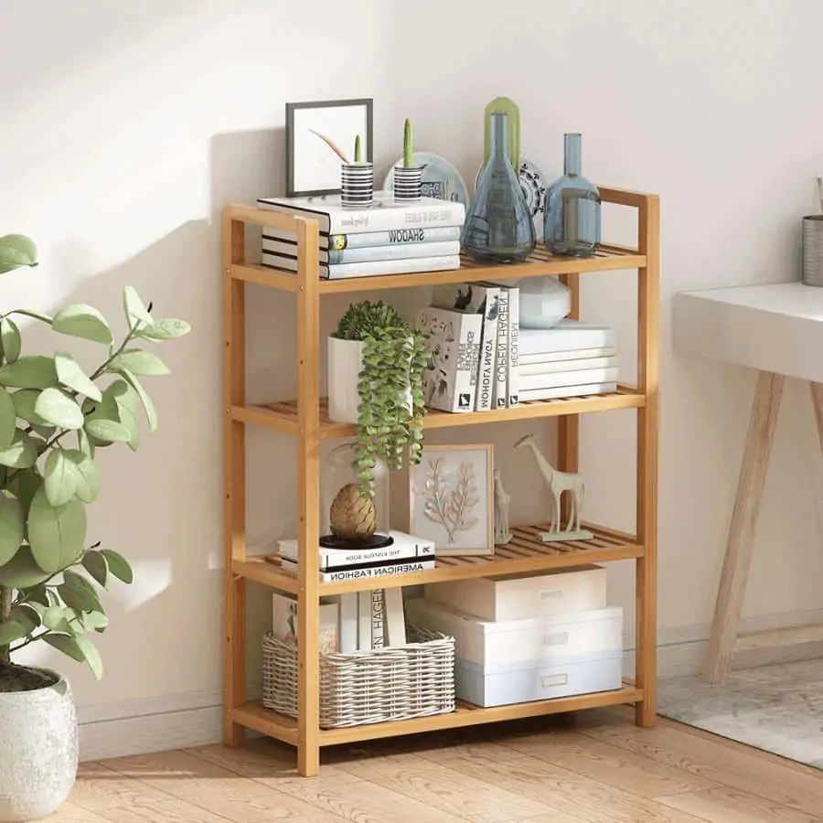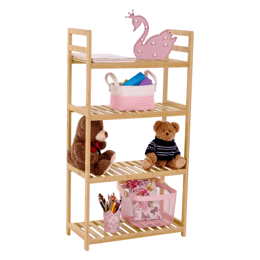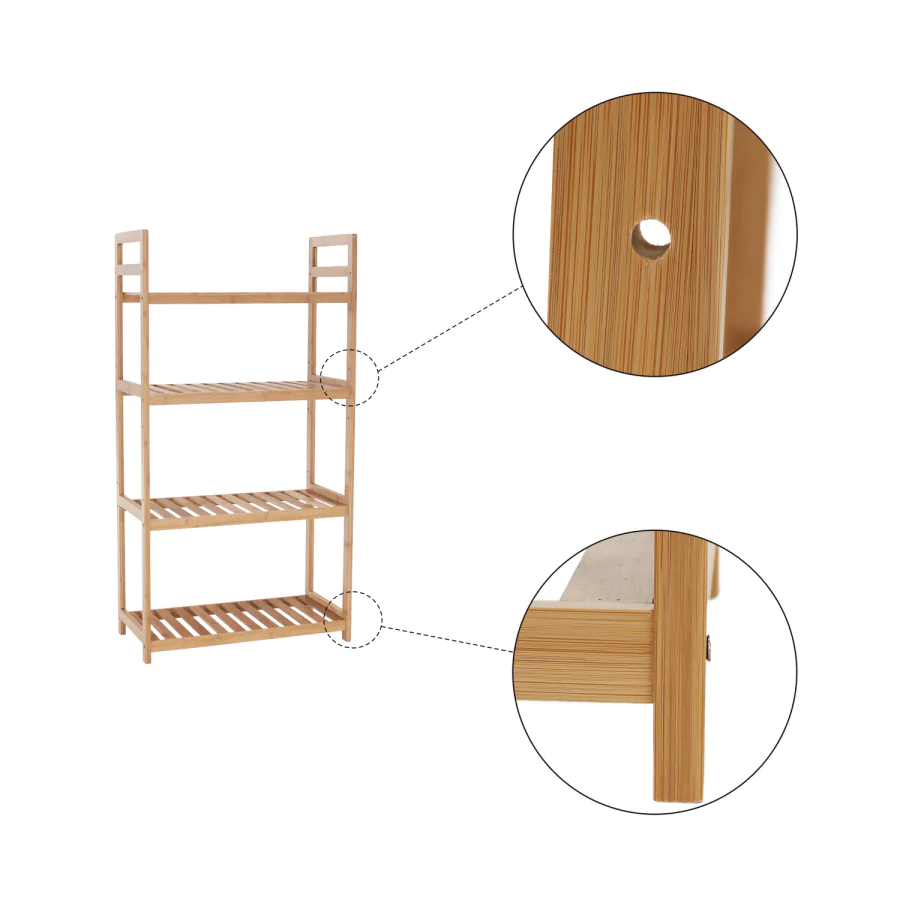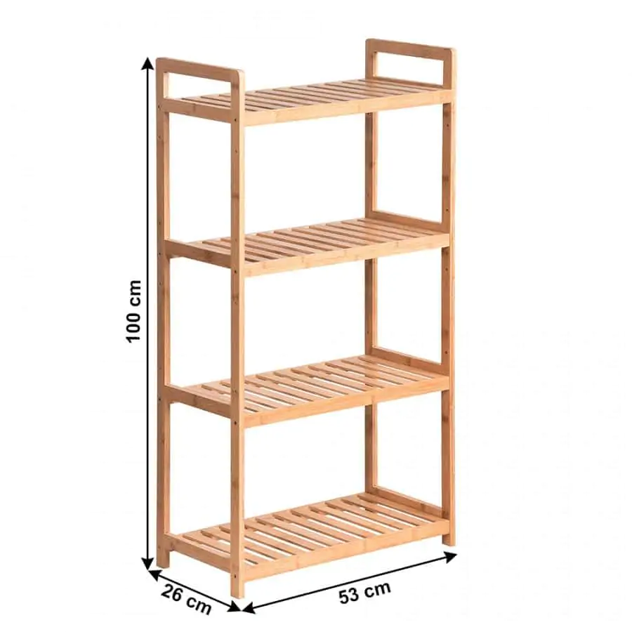 Praktický 4-policový bambusový regál FIORE TYP 2 se bude vyjímat v koupelně, předsíni, kuchyni, ale také v obývacím pokoji.