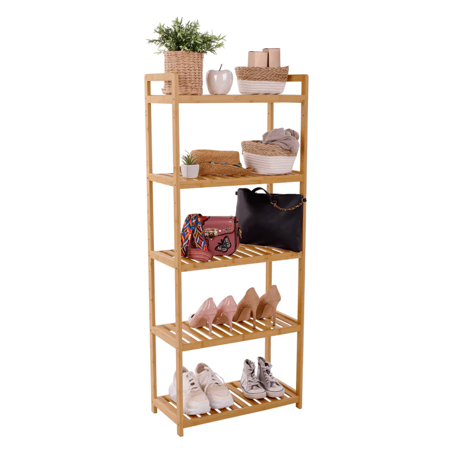 Praktický 5-policový bambusový regál FIORE TYP 3 se bude vyjímat v koupelně, předsíni, kuchyni, ale také v obývacím pokoji.