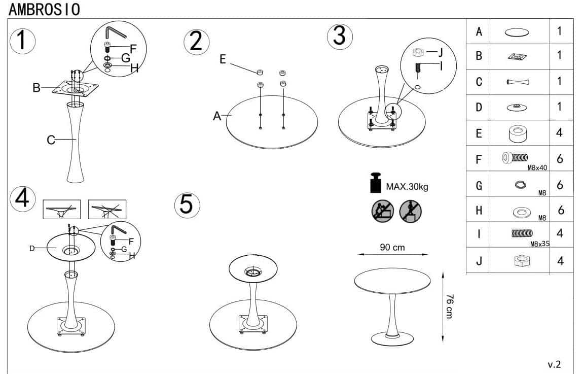 Kulatý jídelní stůl v moderním designu. Deska stolu je skleněná v dekoru mramor. Stabilitu zajišťuje podnož z práškované oceli v černé barvě. Dodávaný v demontu.