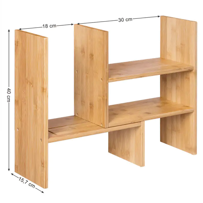 Bambusový organizér AUK-E1045 NAT na stůl v přírodním odstínu nabízí praktické řešení pro udržení pořádku na pracovním nebo psacím stole.