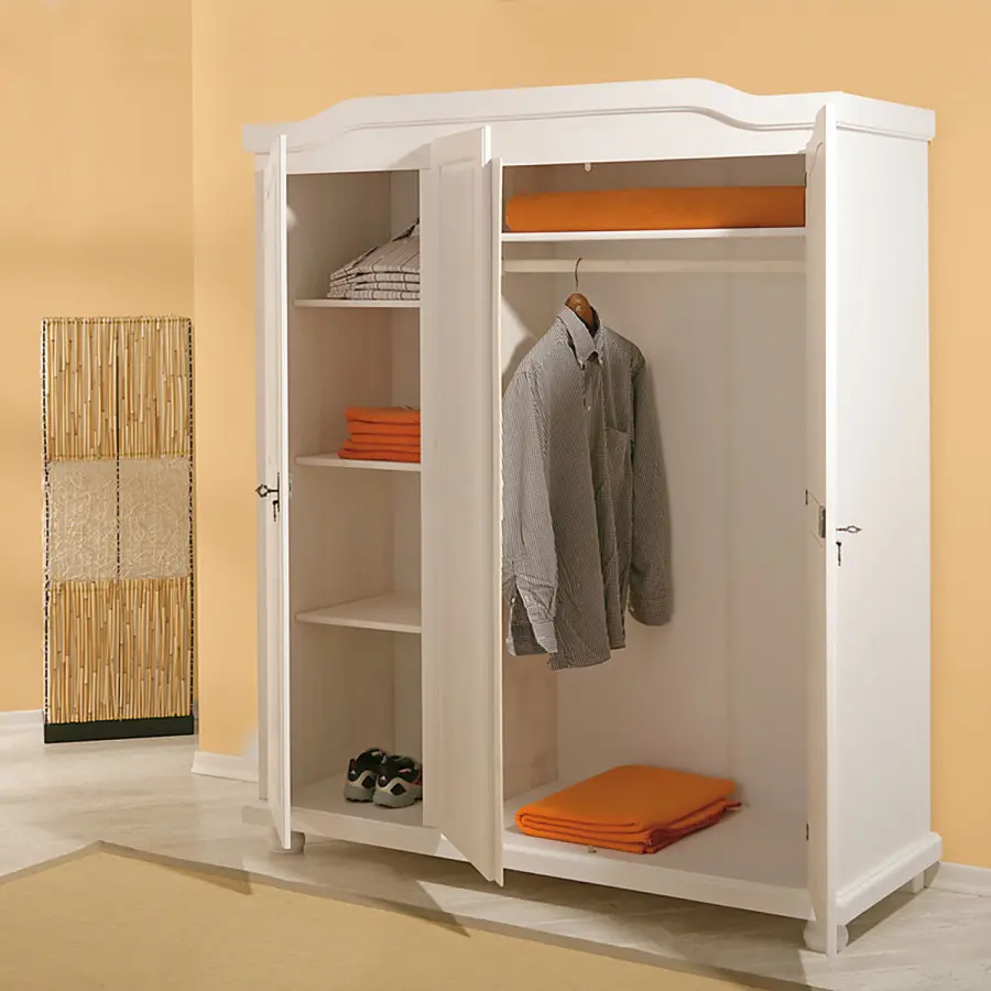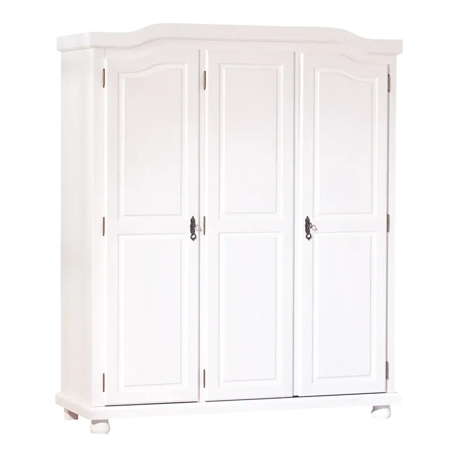 Třídveřová šatní skříň vyrobená z masivní borovice v barevném provedení bílý lak.