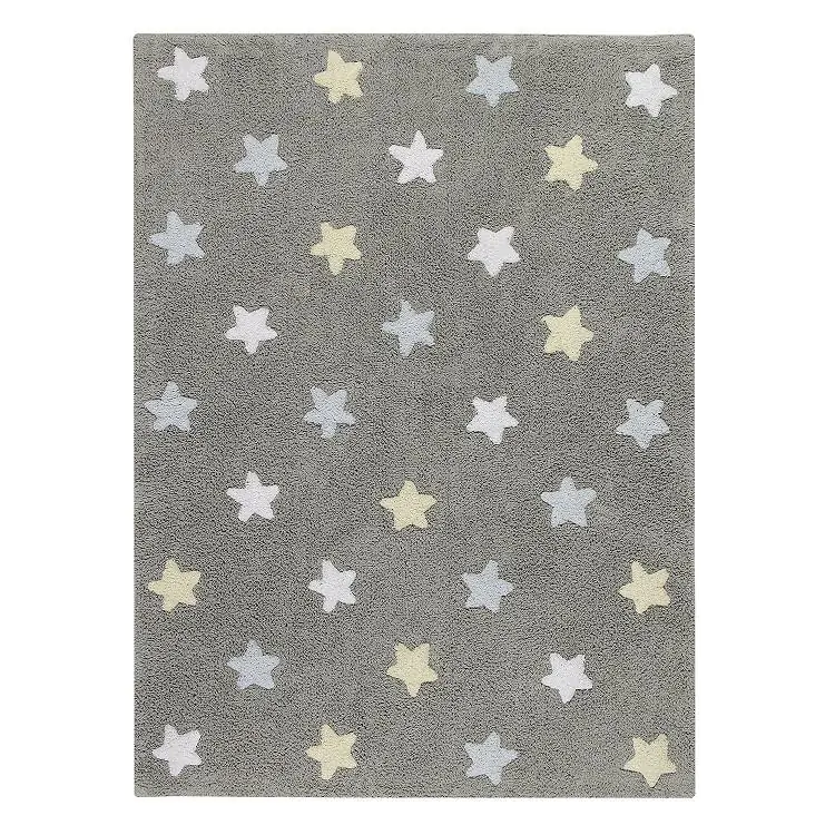 Bio koberec kusový, ručně tkaný – Tricolor Stars šedá/modrá