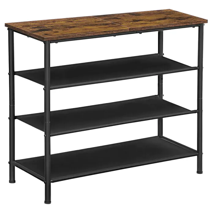 Nabízí tři prostorné police potažené polyesterovou tkaninou, které poskytují dostatek místa pro uložení obuvi i dalších drobných předmětů. Kovové nohy jsou opatřeny plastovými kluzáky, které chrání podlahu před poškozením a zajišťují stabilitu.