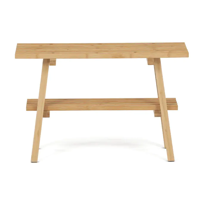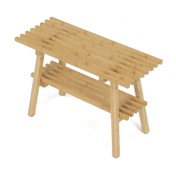Jeho jednoduchý design s jednou policí tvořenou vodorovnými latěmi umožňuje efektivní větrání a rychlé schnutí obuvi. Stabilní nohy mírně rozšířené do stran zajišťují pevnost a bezpečnost při používání. Povrchová úprava bambusu podtrhuje jeho přírodní vzhled a zároveň usnadňuje údržbu. Díky kompaktním rozměrům se botník hodí do předsíní i menších prostor.