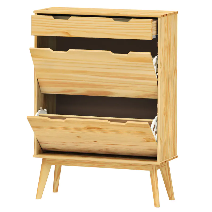 Botník disponuje 2 dvouřadými výklopy a zásuvkou s kovovými pojezdy v horní části.