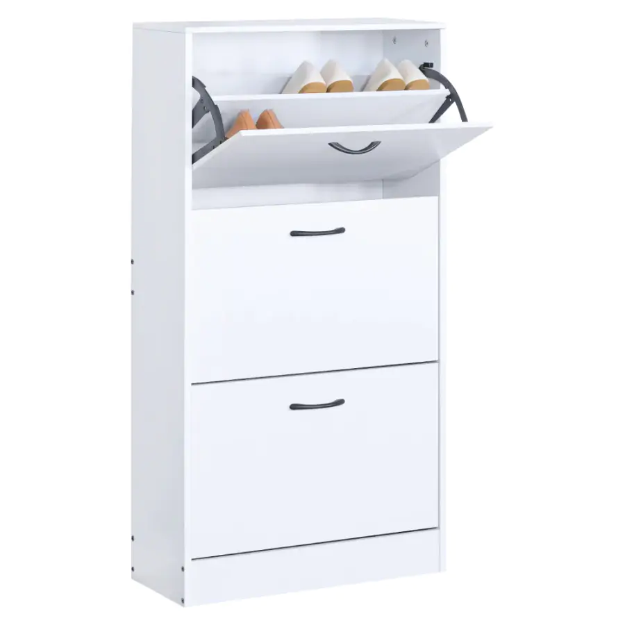 Udržujte si přehled ve své obuvi s botníkem BOTORIA, který spojuje praktičnost s moderním vzhledem. Díky třem výklopným úložným částem s více přihrádkami nabízí dostatek prostoru pro každodenní i výjimečné páry bot. J