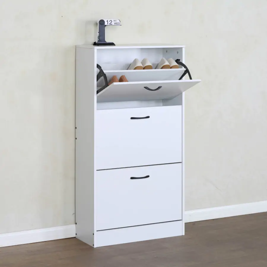 eho minimalistický vzhled v bílé barvě se dokonale hodí do moderních interiérů. Vyroben je z dřevotřísky a doplněn je o plastové úchytky. BOTORIA spolehlivě ukryje vaši obuv a zachová čistý vzhled místnosti.