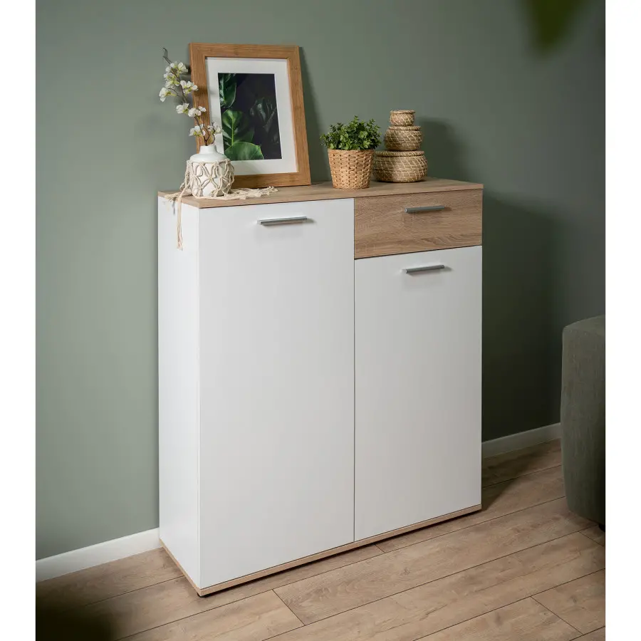 Botník JACKY, v barevném provedení dub sonoma/bílá, krásně zapadne do moderní předsíně.