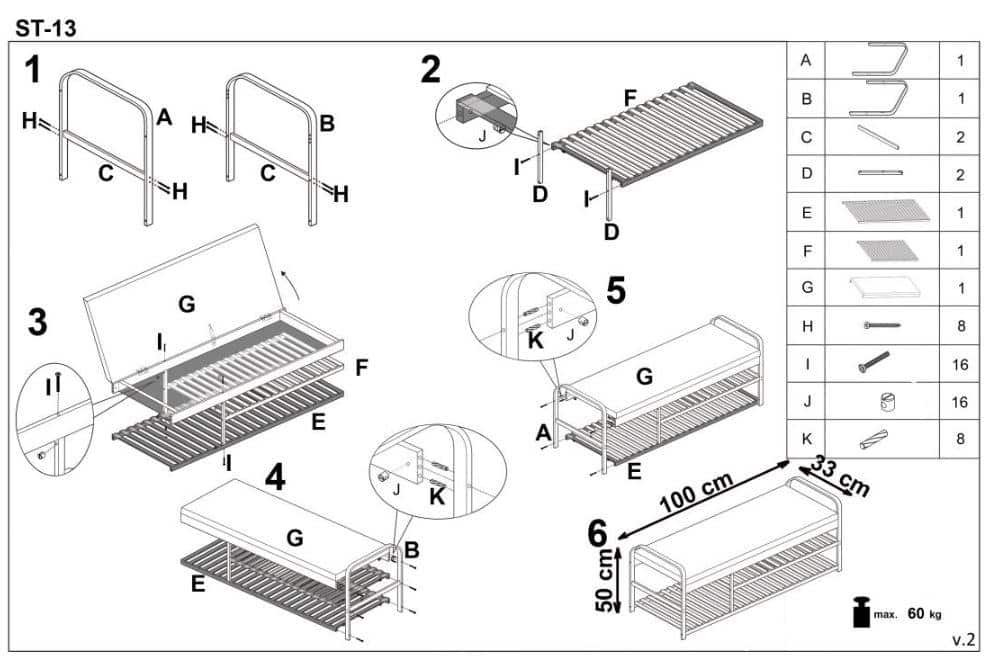 Jednoduchý a praktický botník ST13 s dvěma řadami na odkládání bot a malým úložným prostorem.