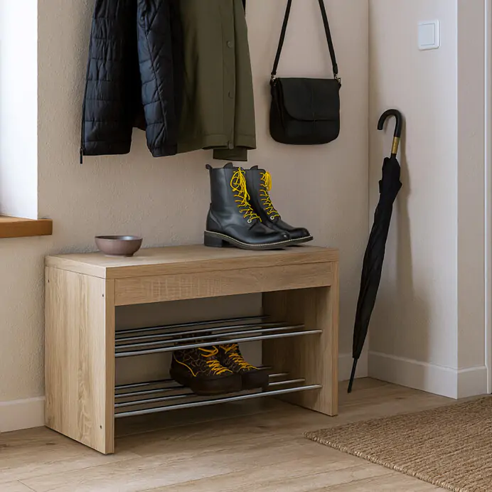 Dvojpolicový botník je vyrobený v moderním provedení - kombinace chromu s laminem v dekoru Dub Sonoma.