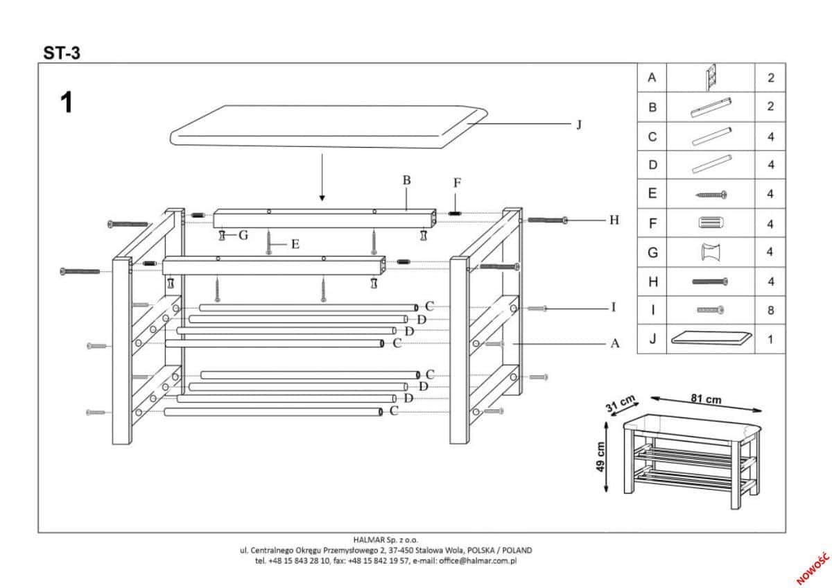Jednoduchý a praktický botník s dvěma řadami na odkládání bot. Konstrukce botníku je zhotovena z laminované MDF v dekoru buku, odkládací prostor na boty je z chromované oceli. Dodáváno v...