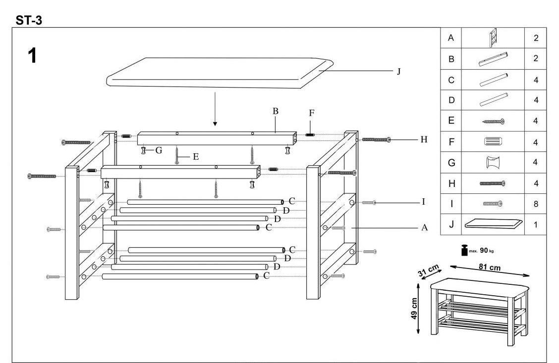 Konstrukce botníku je zhotovena z laminované MDF v barvě wenge, odkládací prostor na boty je z chromované oceli.