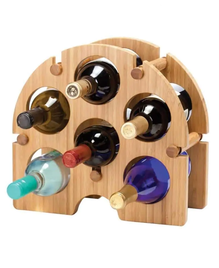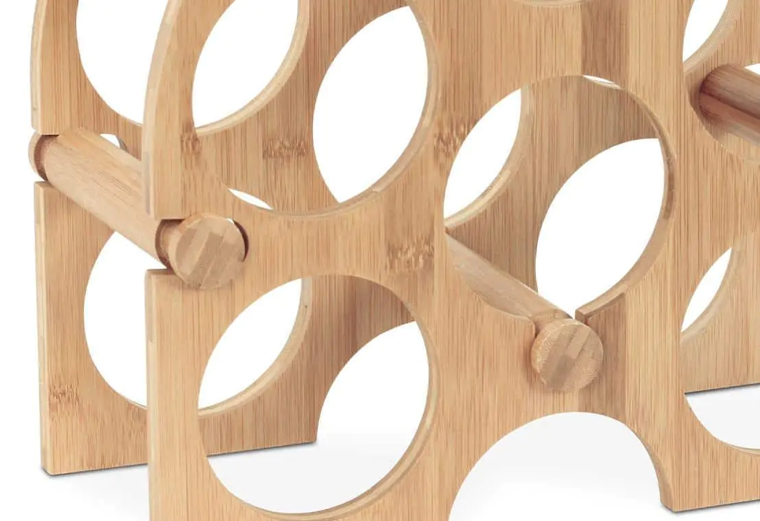 Stojan na víno je vyroben z bambusu. Je to praktický a vkusný doplněk v interiéru.