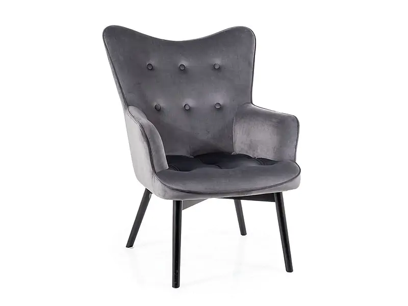 Pohodlné čalouněné křeslo KLARA v elegantním stylu bude ozdobou každého interiéru. Nožky jsou ze dřeva v barvě černá mat , čalounění je z látky velvet v šedé barvě (Bluvel 14). Celková výška...