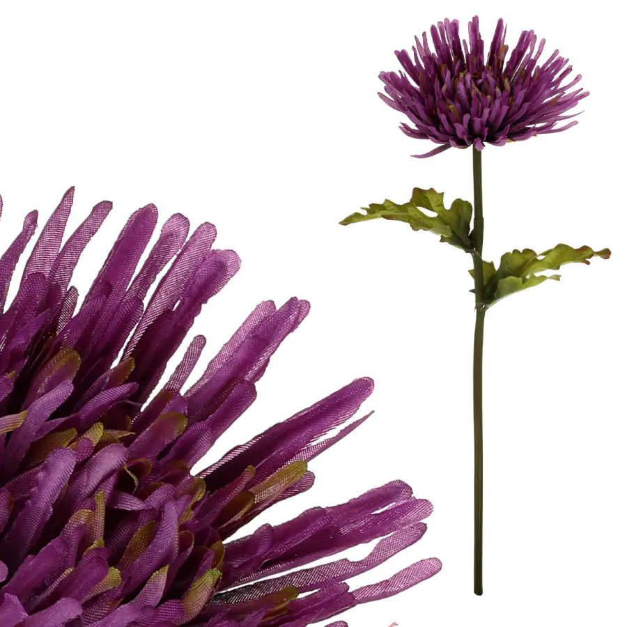 Toužíte po květinové výzdobě, která vypadá skvěle a zároveň vydrží velmi dlouhou dobu stejně svěží? V tom případě bude pro Vás varianta umělé řezané květiny, třeba v podobě jednohlavé chryzantémy KU4337 s tmavě fialovými květy tou ideální volbou.