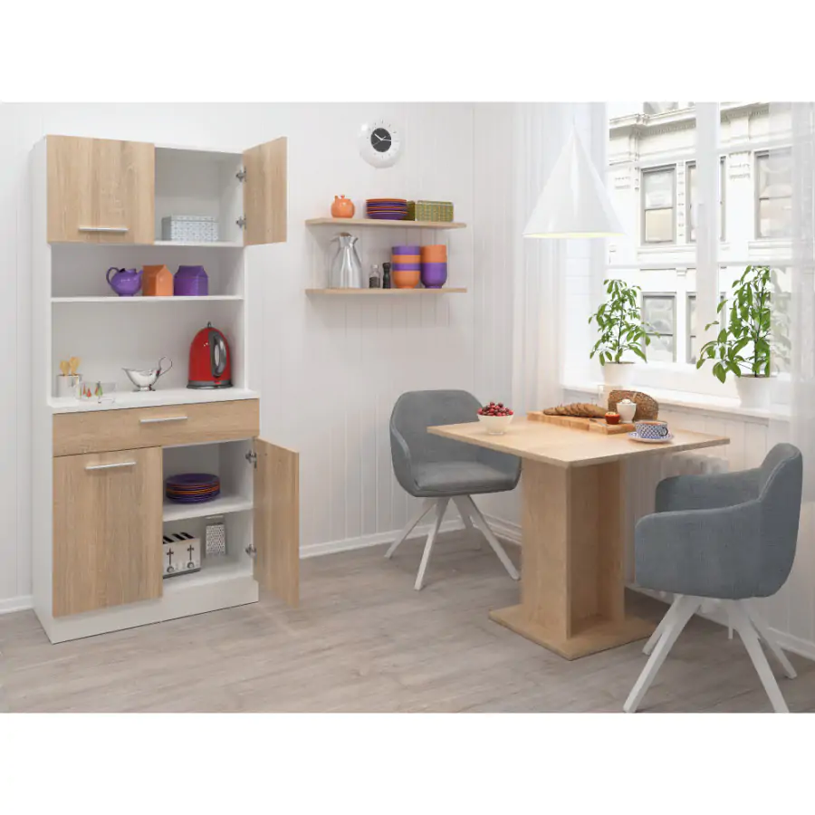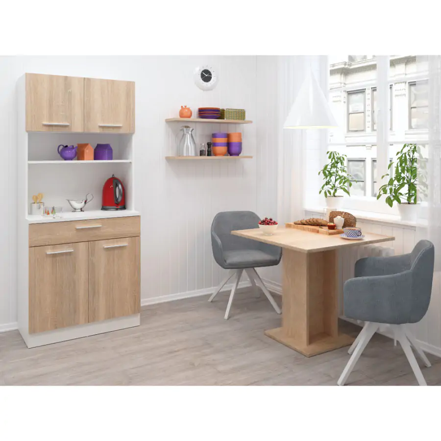 Uspořádejte si domov s kredencem DOMIS NEW a vdechněte svému prostoru harmonii a pořádek! Je vyroben z laminované DTD v moderní barvě dub sonoma/bílá, která dodá vašemu interiéru svěží a nadčasový vzhled. DOMIS NEW je ideálním společníkem do kuchyně, jídelny nebo na terasu.