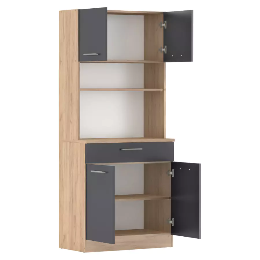 Uspořádejte si domov s kredencem DOMIS NEW a vdechněte svému prostoru harmonii a pořádek! Je vyroben z laminované DTD v moderní barvě dub artisan/grafit, která dodá vašemu interiéru svěží a nadčasový vzhled. DOMIS NEW je ideálním společníkem do kuchyně, jídelny nebo na terasu.
