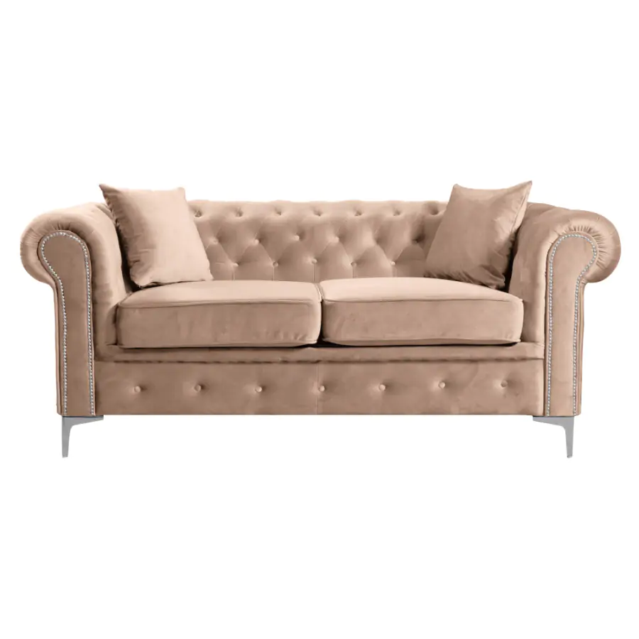 Elegantní a luxusní obývací pokoj s 2-sedem ROMANO se stane skutečností. Čalouněný je světle hnědou sametovou látkou, která přidává na noblesu. 2-sed je celočalouněný a jeho umístěním do prostoru získáte nepřehlédnutelný prvek, který upoutá na první pohled. Stabilitu zajišťují kovové nohy ve stříbrné barvě. Tento impozantní 2-sed je hrdým zástupcem stylu Chesterfield.