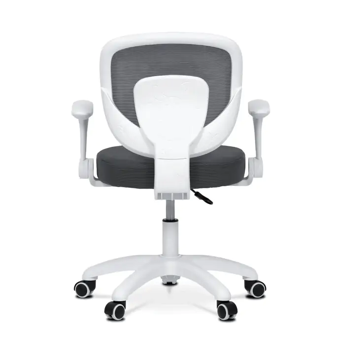Dětská židle KA-K1062 GREY s šedým síťovinovým potahem nabízí prodyšné a pohodlné sezení vhodné pro studenty.