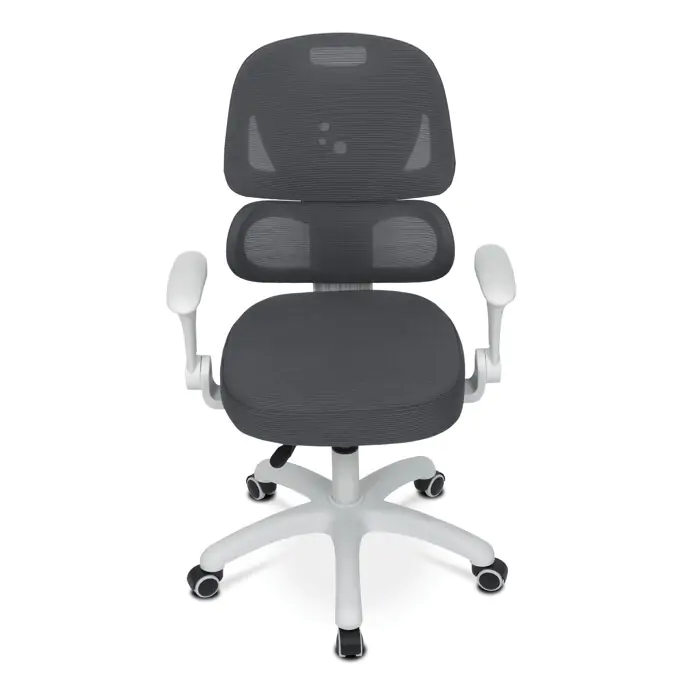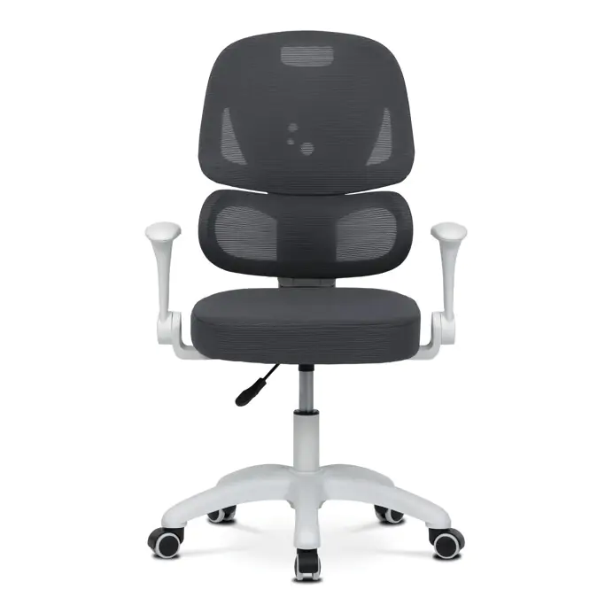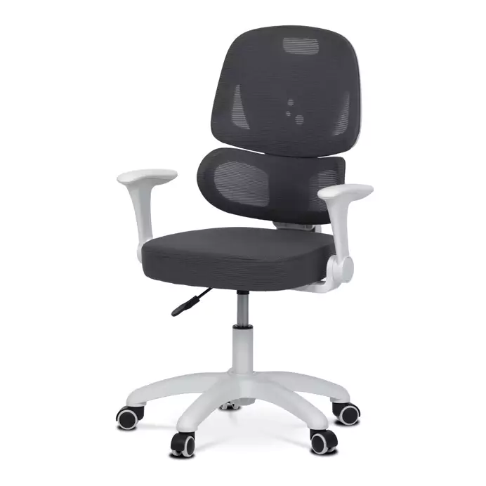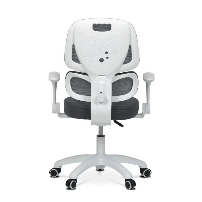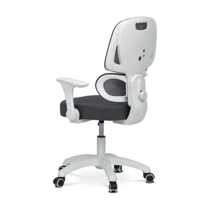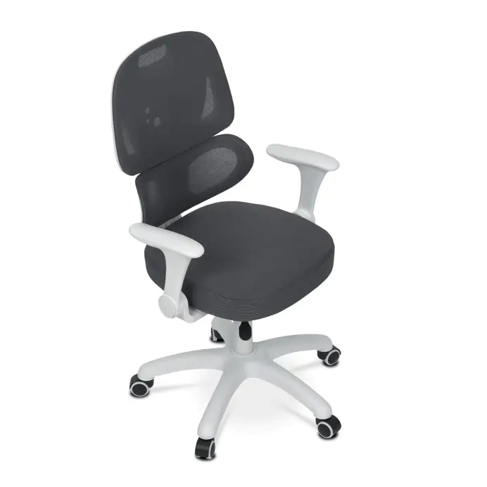 Dětská židle KA-K1063 GREY s tmavě šedou síťovinou nabízí pohodlné a zdravé sezení díky ergonomicky tvarované bederní opěrce a výškově nastavitelnému opěráku.