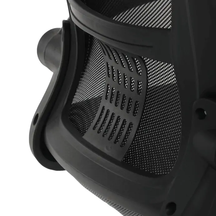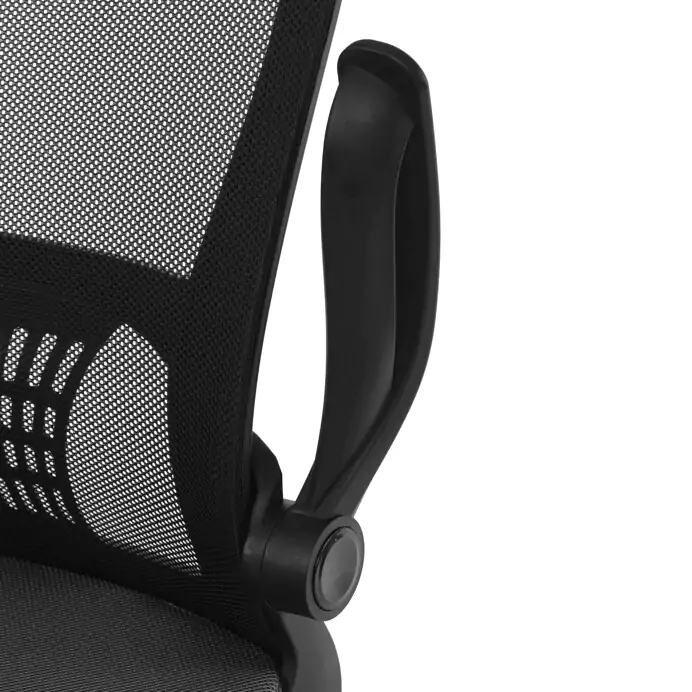 Prodyšný opěrák zajišťuje optimální cirkulaci vzduchu, což přispívá k příjemnému pocitu i při delším používání. Odklápěcí područky umožňují snadné přizpůsobení pracovnímu prostoru a usnadňují zasunutí židle pod stůl.