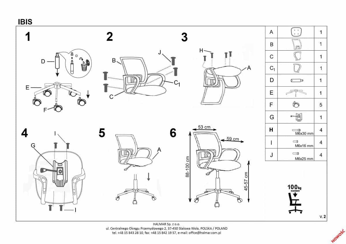 Židle má stabilní základnu a 5 plastových koleček. Tuto židli lze výškově polohovat. Nosnost do 100 kg.