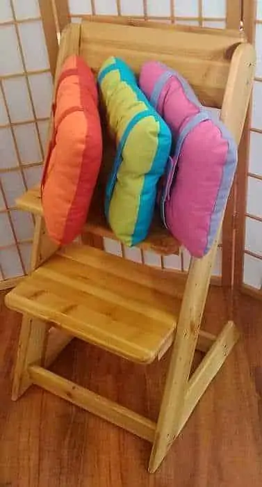 Sedák na dětskou rostoucí židli je velmi pohodlný i díky příjemné potahové látce . Je dostupný ve 2 barevných variantách: růžovo-fialový, tyrkysovo-zelený