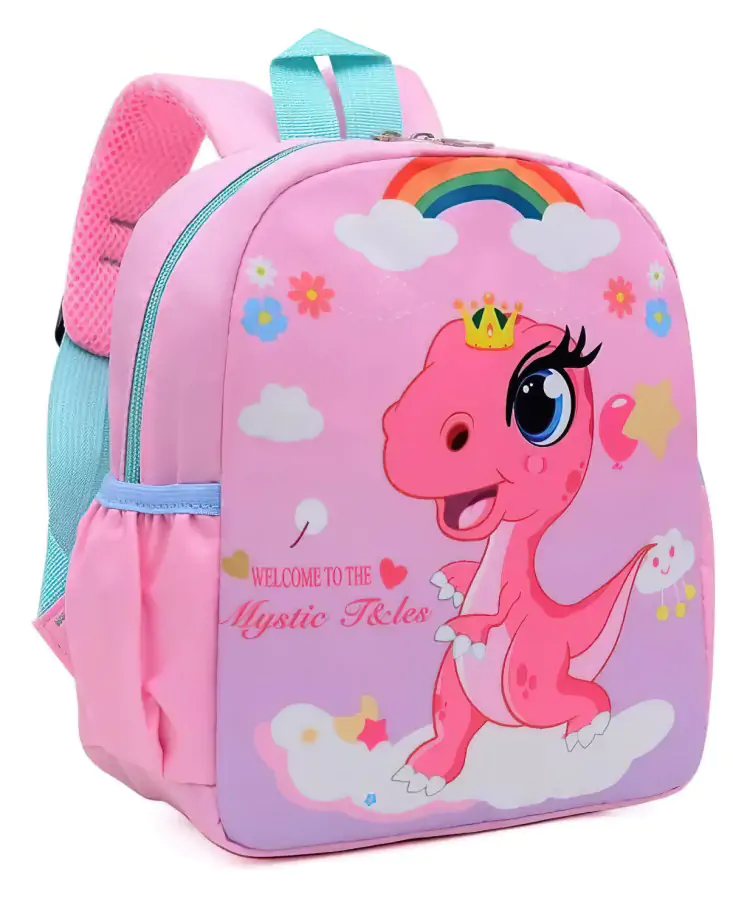 Veselý dětský batoh v růžovém provedení s motivem Dinosaura. Nádherné barvy, pevné a kvalitní provedení , snadné zapínání, to je to, co ocení nejen děti, ale i rodiče. Vhodný na výlety i do školky....