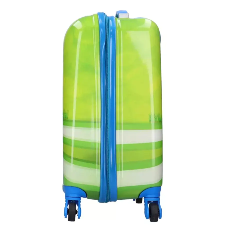 Dětský cestovní kufr na kolečkách pro nejmenší cestovatele. Perfektní pro všechny typy výletů, prázdninové výlety, školní nebo předškolní výlety. Ideální do letadla - jako příruční zavazadlo. Kufr je vyroben z ABS plastu, polykarbonátu odolného proti poškození, má ochrannou fólii, která jej chrání před poškozením. Součástí kufru je výsuvná teleskopická rukojeť, čtyři kolečka odolná proti zatížení, uzavíratelný standartními zipy. Vnitřek kufru je podšitý podšívkou s bezpečnostními popruhy.