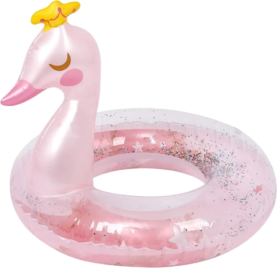 Plavte se ve stylu s nafukovacím kruhem ve tvaru labutě, která je ozdobená korunkou na hlavě.