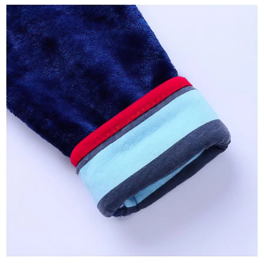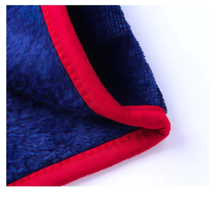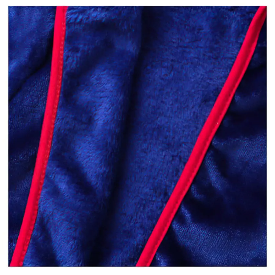 Župan je vyroben z kvalitního plyšového materiálu, který je jemný na dotek a šetrný k dětské pokožce. Materiál je navíc snadno udržovatelný a odolný, což usnadňuje jeho pravidelné používání. Župan je navržen v tmavě modré barvě s výraznými červenými lemy, které mu dodávají stylový vzhled.