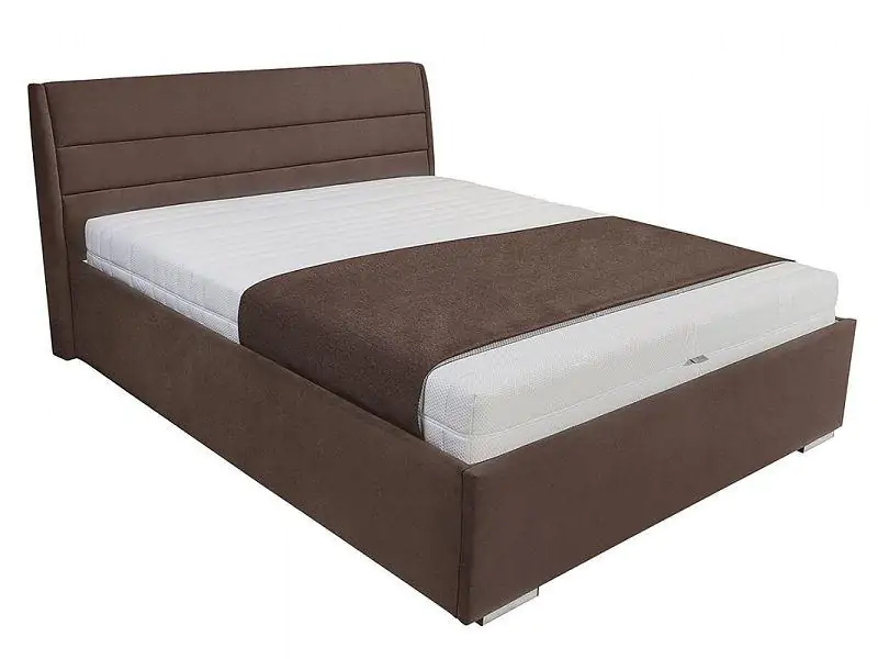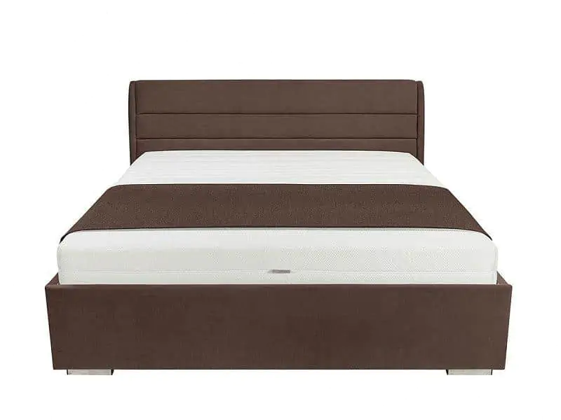 Čalouněná postel Sandra futon je elegantní manželská postel pro matrace šíře 160 cm. Potahová látka Amore 30 hnědá.
