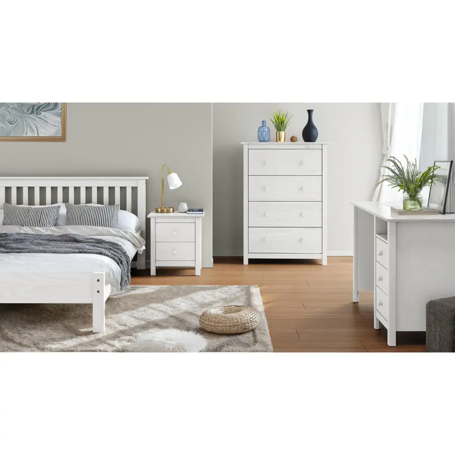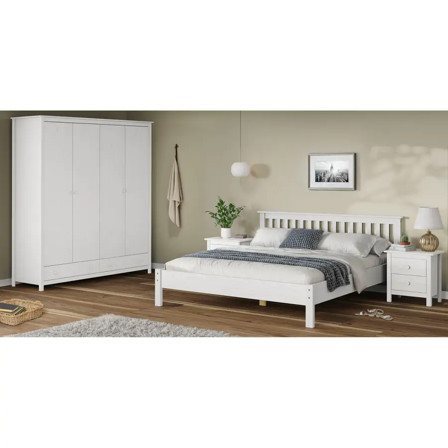 Bílé dvoulůžko TORINO si bude dobře rozumět s dalším nábytkem TORINO bílý lak. Zařiďte si celou ložnici tímto nábytkem, pokoj bude působit čistě a vzdušně.