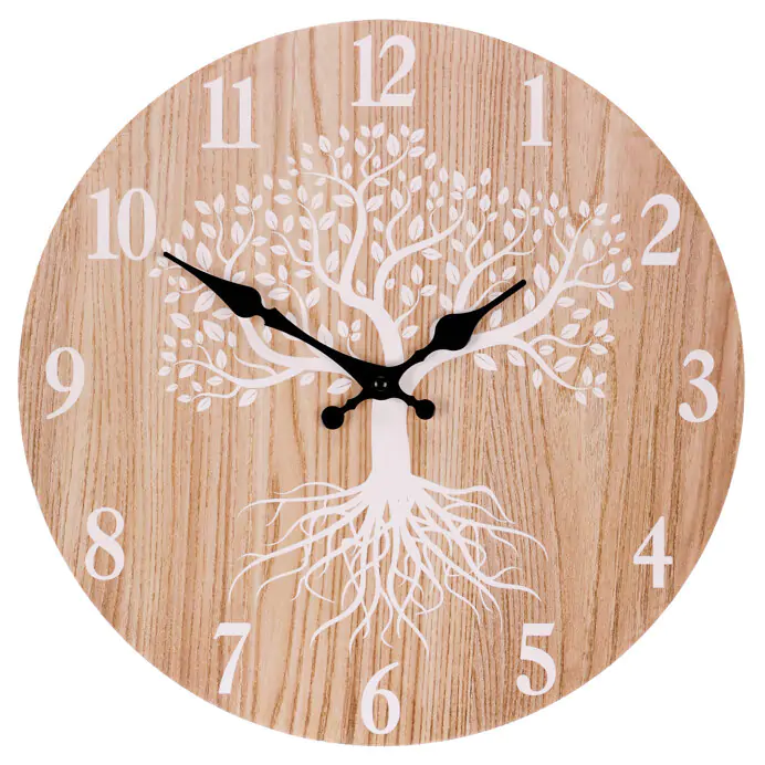Tyto kruhové hodiny v přírodní barvě dřeva a zobrazeným bílým stromem života slouží jako důležitý prostředek pro měření času, ale také jsou výrazným dekoračním prvkem pro vaši domácnost či pracovní prostor.