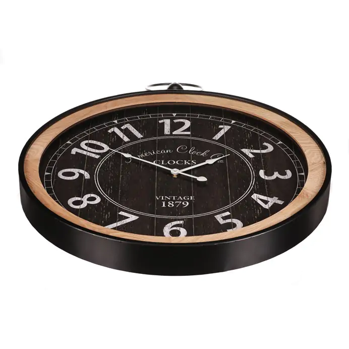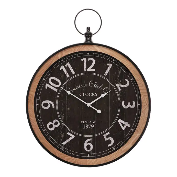 Nástěnné hodiny HW4009 s průměrem 58 cm připomínají elegantní pánské kapesní hodinky a kombinují kov s MDF pro sofistikovaný vzhled.