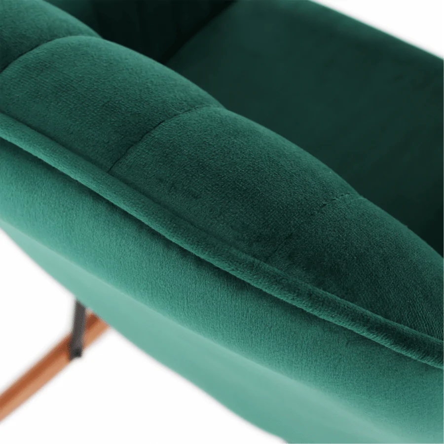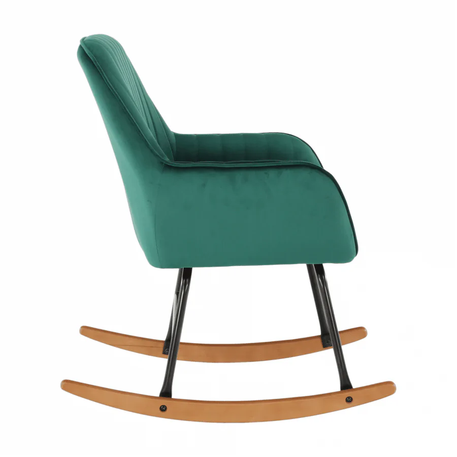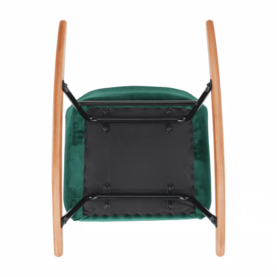 Moderní pohodlné houpací křeslo Taram. Materiál: látka Velvet / kov / dřevo Provedení: zelená / černá / dub Rozměry (ŠxHxV): 56x76x77 cm Výška sedu: 41 cm Hloubka sedu: 43 cm ...