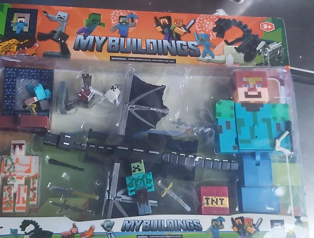 Figurky jsou vyrobeny z plastu, který zajišťuje jejich dlouhou životnost a odolnost při hraní. Díky pohyblivým končetinám mohou děti snadno vytvářet vlastní akční scény. Součástí sady jsou také zbraně, brnění, nástroje a dokonce i blok TNT, které přidávají do hry další možnosti a kreativitu.