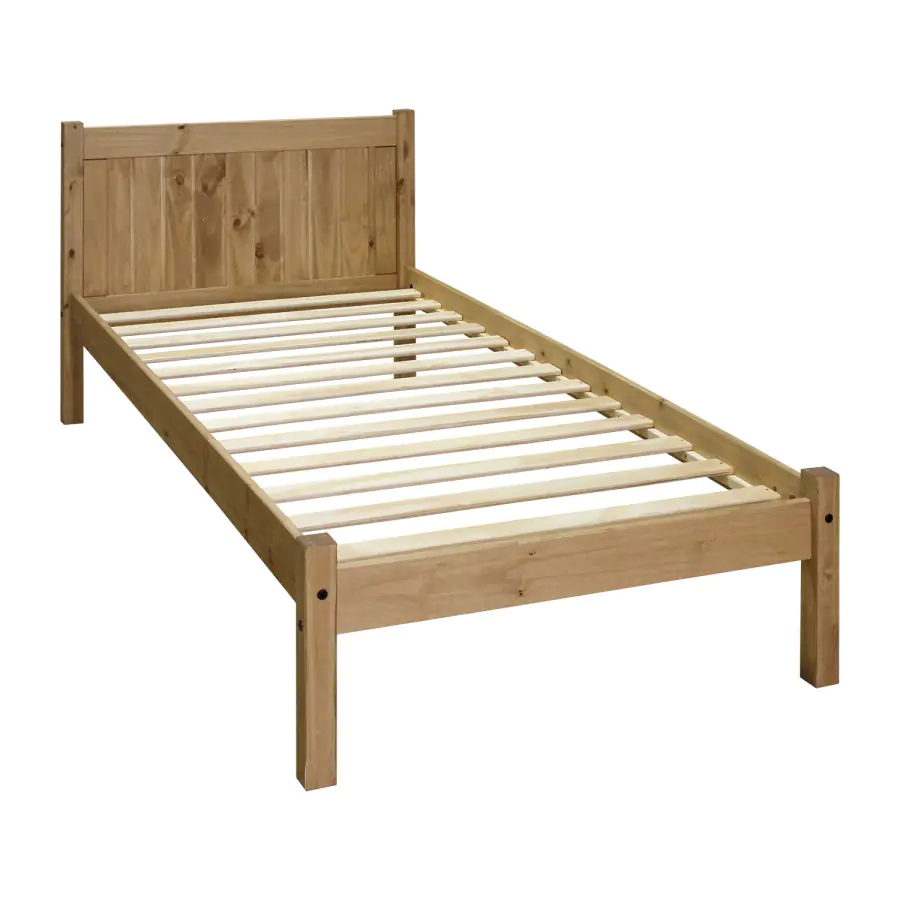 Jednolůžko CORONA RIO v rozměru 90x200 cm v provedení masiv borovice je voskováno v krásném medovém odstínu a nabízí vám velkorysý prostor pro odpočinek.