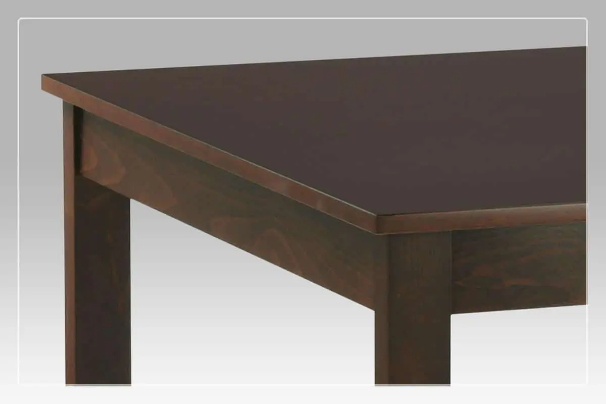Jídelní stůl, barva tmavý ořech, používáme jako jídelní a pracovní stůl, vhodný až pro 6 osob, s velikostí a kvalitou jsme spokojeni. Koupili jsme v červenci 2017 v e-shopu ATAN za výhodnou cenu (o 1000,- Kč levnější než u jiného prodejce v kamenné prodejně v Praze).