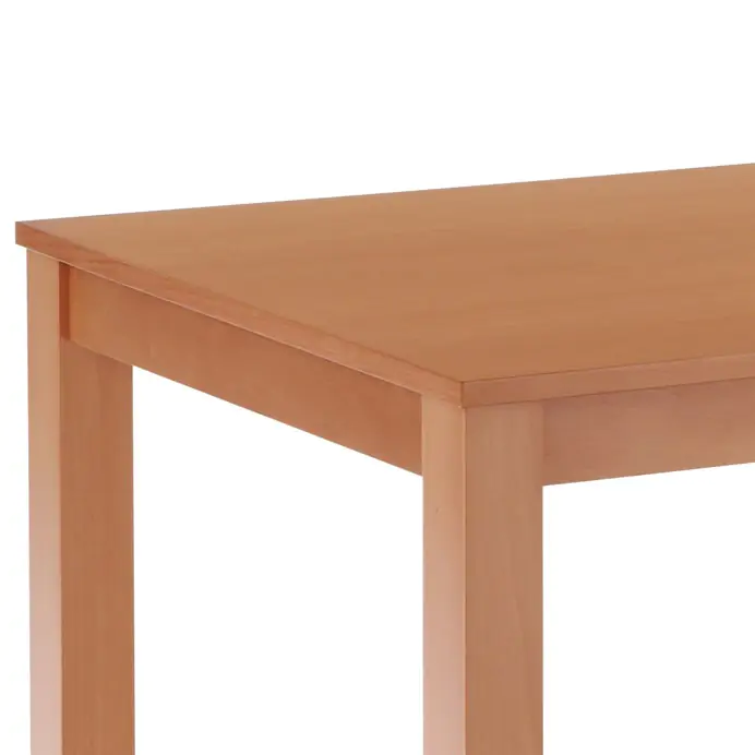 Dřevěný jídelní obdélníkový nerozkládací stůl má dýhovanou stolovou desku. Nohy jsou z masivu.