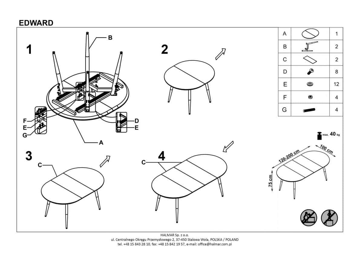 Provedení: Jednoduchý, ale elegantní tvar stolu Edward se hodí jak do moderně zařízených interiérů, tak i do interiérů klasicky zařízených. Stůl je vyroben v rozkládacím provedení, lze rozšířit až na 2...