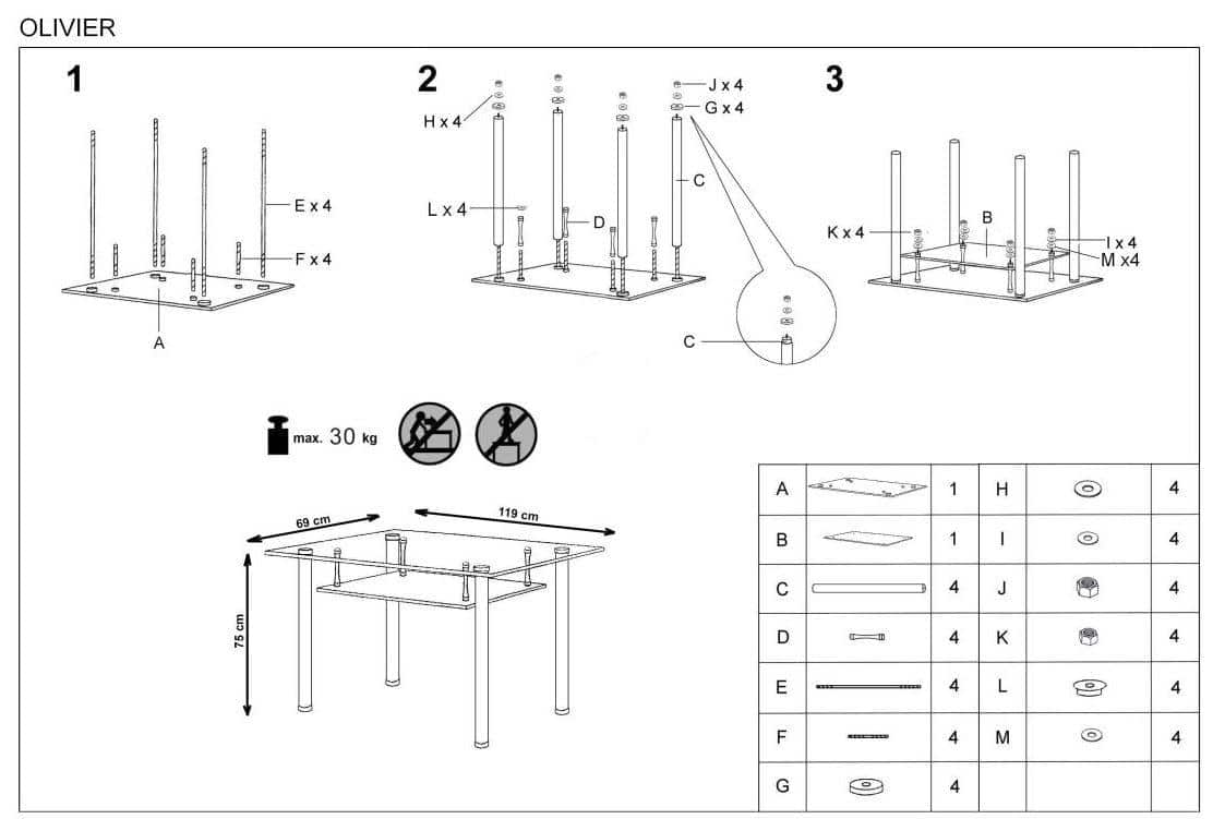 Provedení: Moderní jídelní stůl je zhotoven v kombinaci skla a kovu. Deska stolu je z tvrzeného čirého skla, nohy jsou z nerez oceli. Stůl je doplněn o praktickou odkládací poličku z mléčného skla. ...