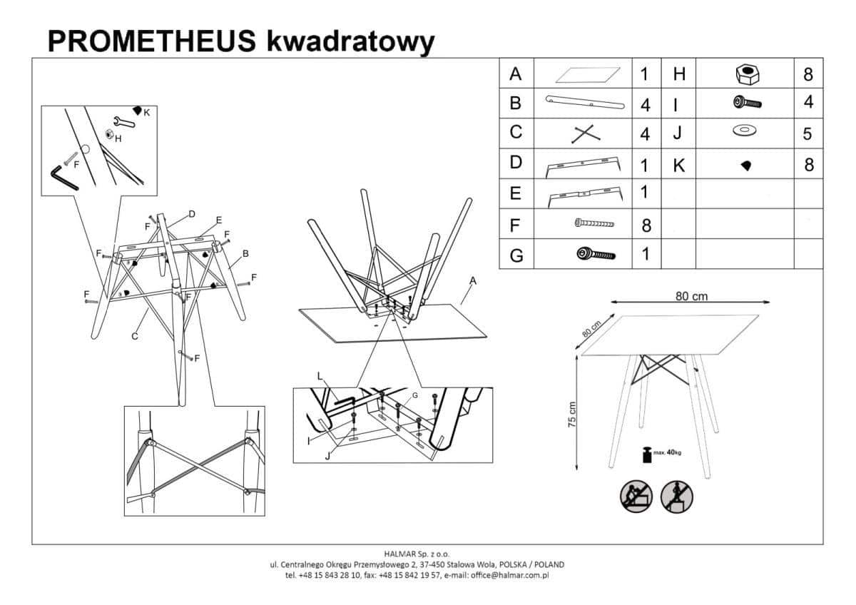 Čtvercový jídelní stůl je vyroben v kombinaci dřevěné lakované MDF desky a nohou z masivního bukového dřeva. Konstrukce stolu je pospojovaná kovovými úchytnými prvky, které jsou vyrobeny z lakované ocele.