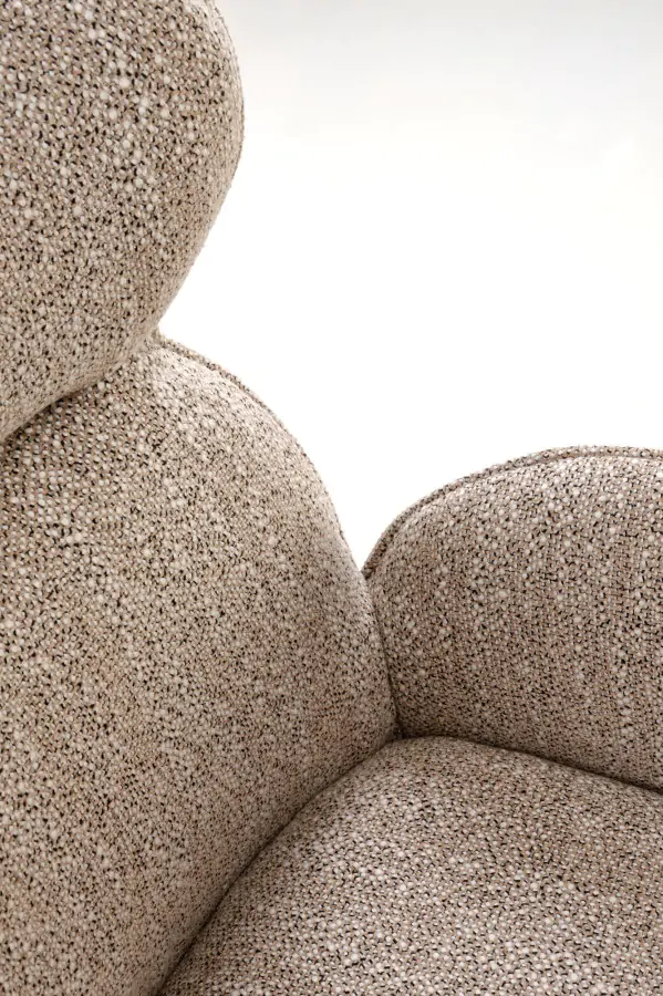 Sedák potažený příjemnou látkou v tmavém béžovém odstínu dokonale ladí s podnoží z masivního dubového dřeva v ořechové barvě. Výsledkem je harmonická kombinace přírodních materiálů a nadčasového vzhledu, která vnese do vašeho interiéru útulnost a osobitý styl.
