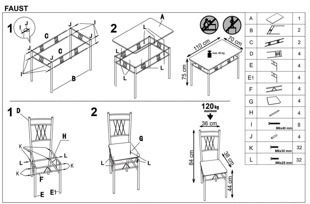 Jídelní set Faust 3 obsahuje jídelní stůl a 4 židle. Stůl je vyroben v kombinaci laminované MDF desky v módní barvě dubu a konstrukce z lakované oceli.