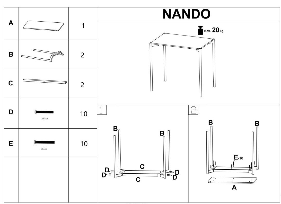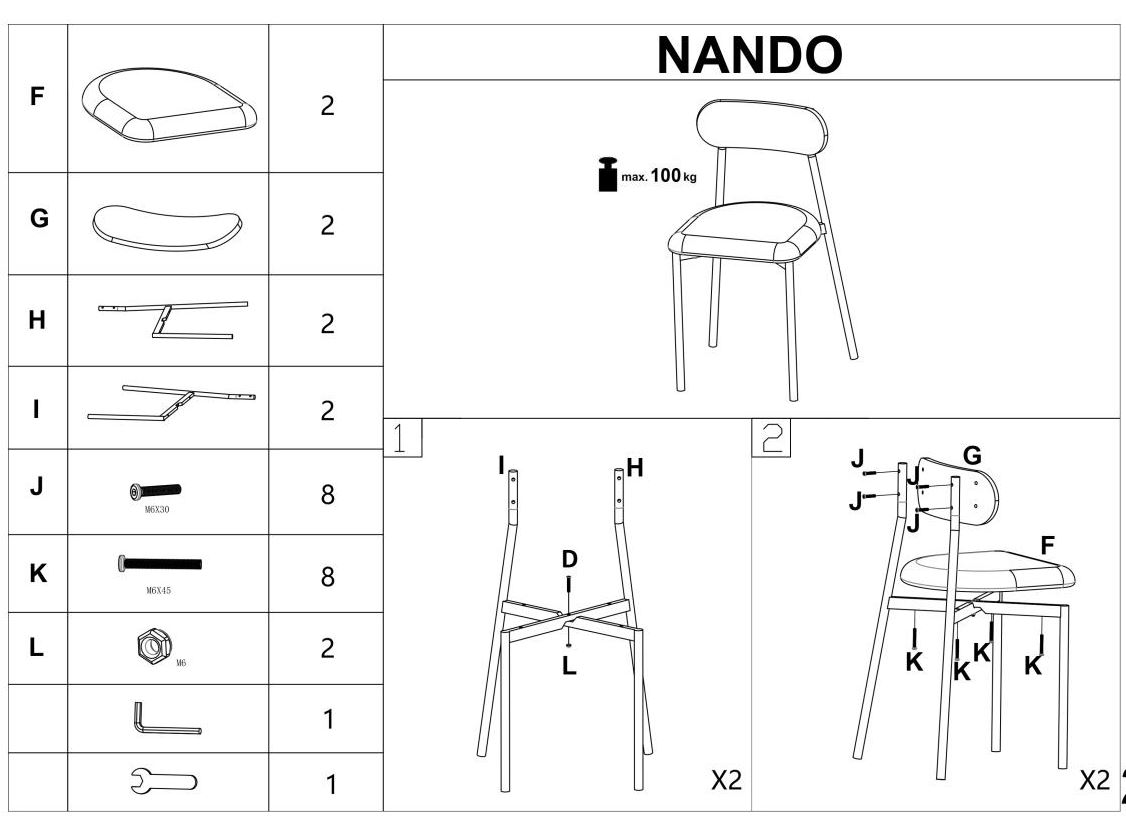 Moderní a praktický jídelní set Nando, stůl + dvě židle.