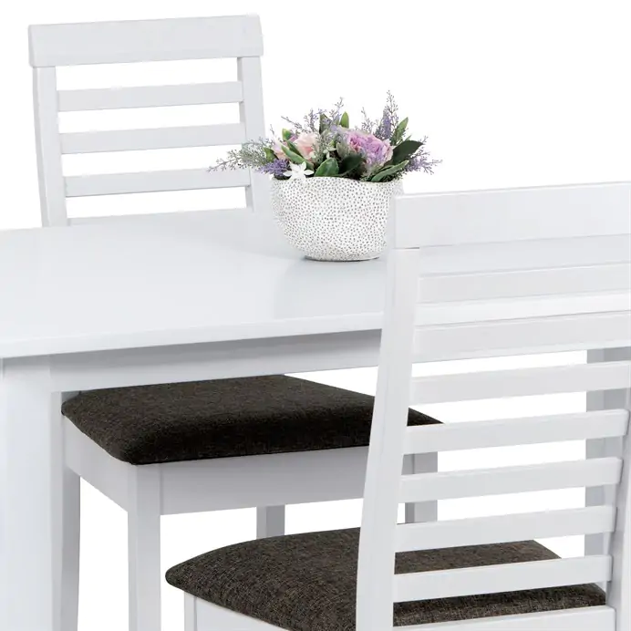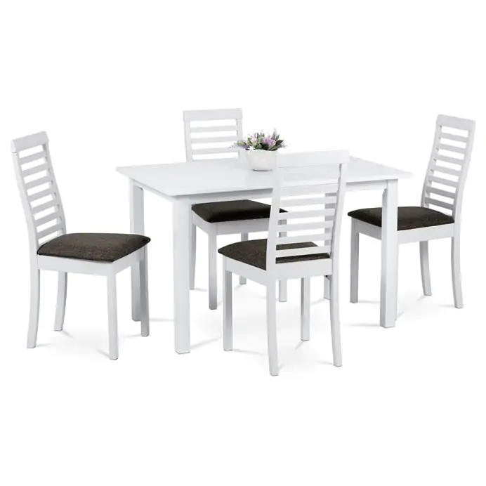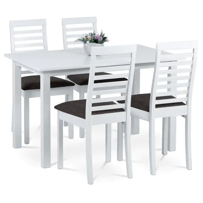 Jídelní set se skládá z obdélníkového stolu a čtyř čalouněný židlí v bílé barvě. Židle a nohy stolu jsou vyrobeny z masivu opatřené dýhou. Deska stolu je vyrobena z MDF desky zakončené...