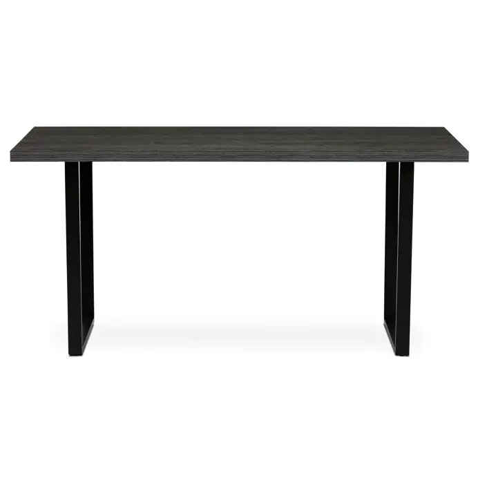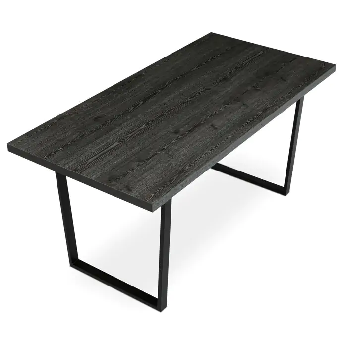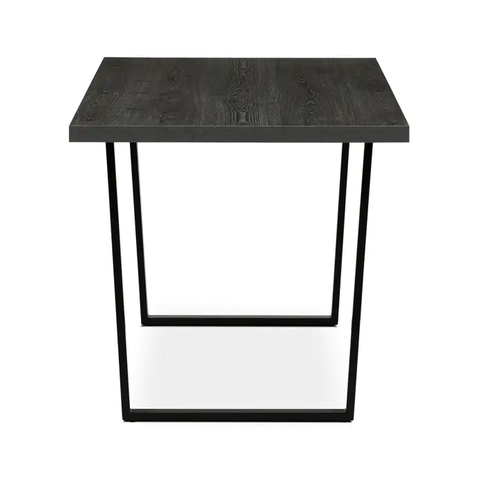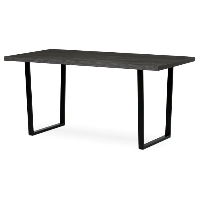 Jídelní stůl HT-R5216 GREY o rozměrech 160x80x76 cm kombinuje desku z lamina s dekorem šedého dubu a pevnou kovovou podnož v černém matném provedení.