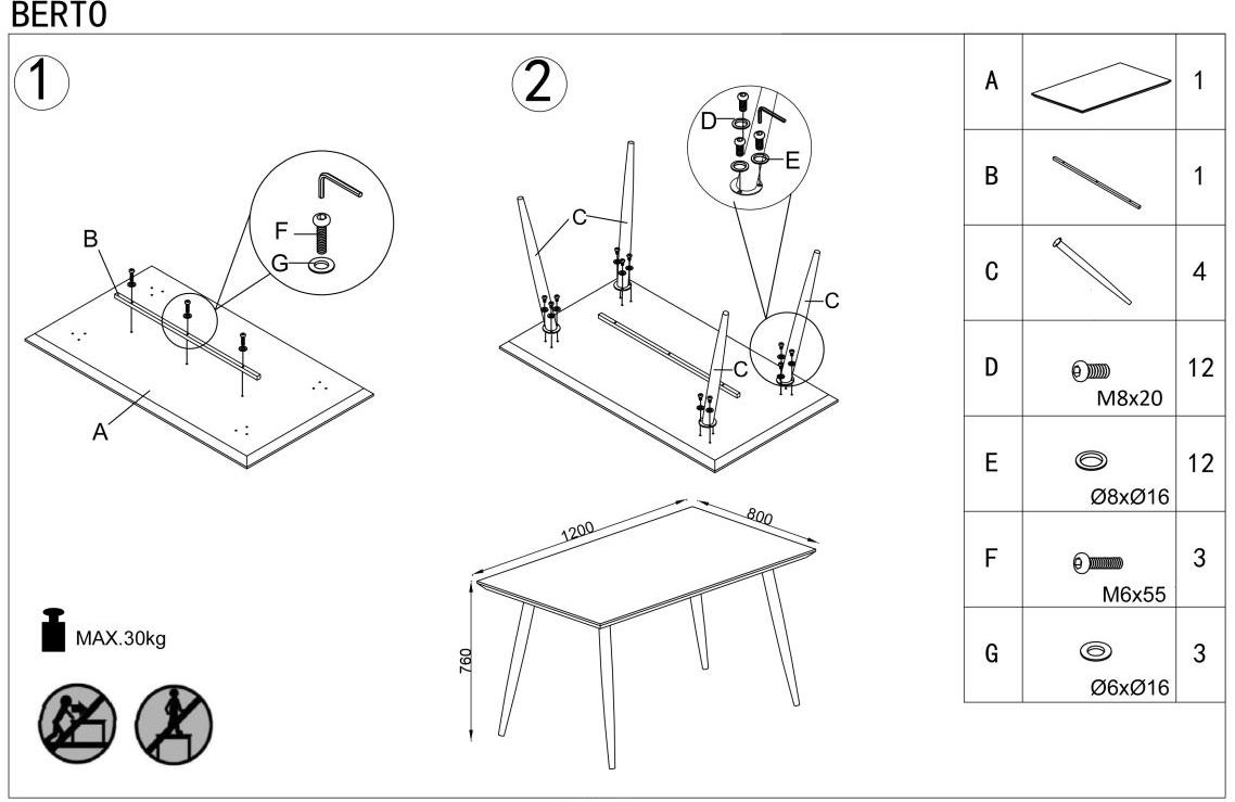 Tento minimalistický design je bez námahy všestranný, takže jej lze snadno doplnit různými styly interiéru. Černé kovové nohy přispívají nejen k moderní estetice, ale také zajišťují stabilitu a odolnost. Kombinace jednoduchosti a odolnosti dělá ze stolu Berto ideální volbu pro ty, kteří ocení styl i praktičnost.