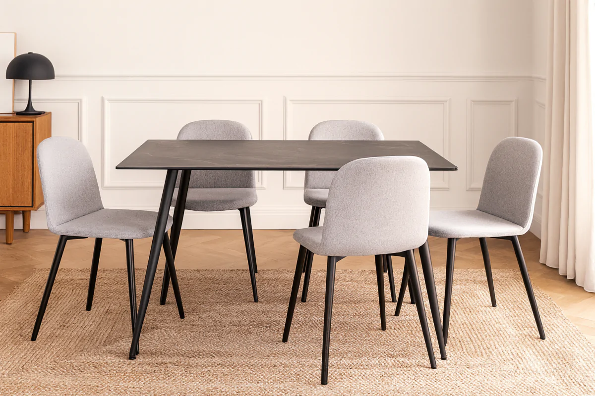 Vhodný do jídelny, kuchyně i menších interiérů. Spojuje praktičnost, odolnost a stylový vzhled.